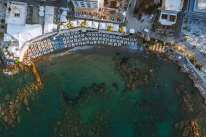 Stranden er meget lille og det koster 14€ for 2 solsenge og en parasol om dagen.